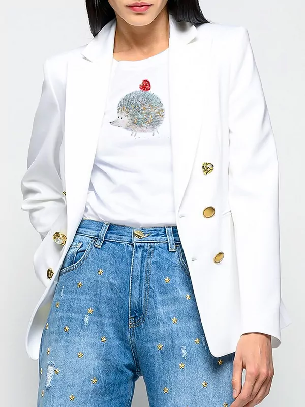 Футболка Ежик женская прямого кроя с росписью и вышивкой.