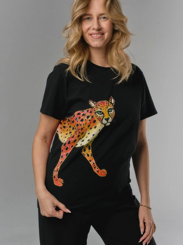 Футболка Гепард прямого кроя с рисунком и вышивкой ручной работы.