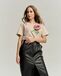Футболка бежевая в оттенке какао прямого кроя с объемным цветком из итальянского шифона.