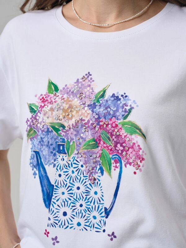 Футболка Сирень женская с росписью и вышивкой ручной работы. Рисунок нанесен вручную акриловыми красками немецкого производства. Декор ручной работы из японского ювелирного бисера и итальянских пайеток. Многочасовая ручная работа заряжает одежду особой энергией. Подарите себе роскошное изделие, выполненное с любовью.