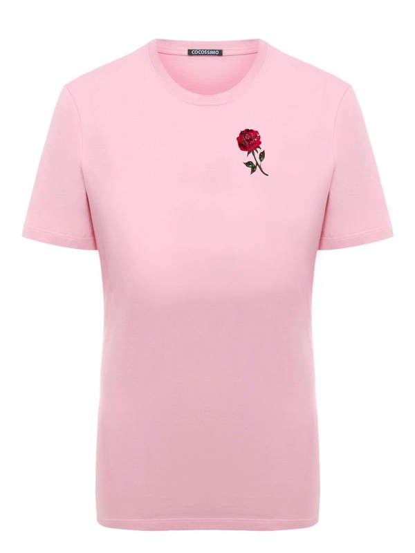 Футболка роза женская с вышивкой прямого кроя с рисунком ручной работы.
