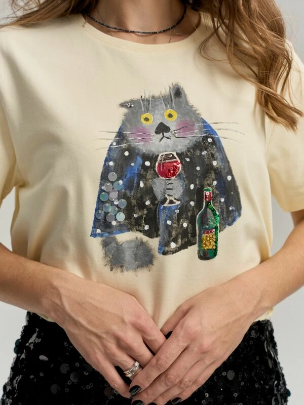 Футболка под настроение сливочнаяс принтом и вышивкой