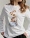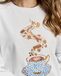 лонгслив прямого кроя в белом цвете с росписью и вышивкой ручной работы "Кофе" в подарочной упаковке