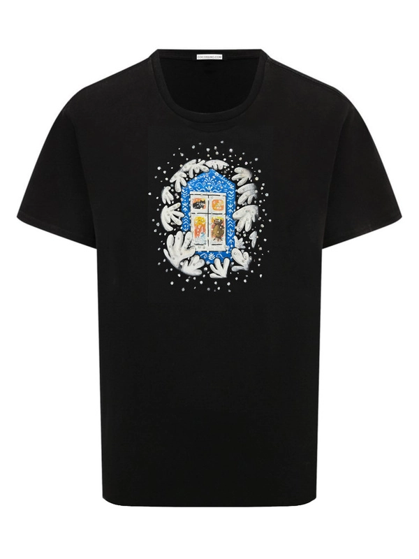 Футболка Зимнее окошко чернаяc принтом и вышивкой