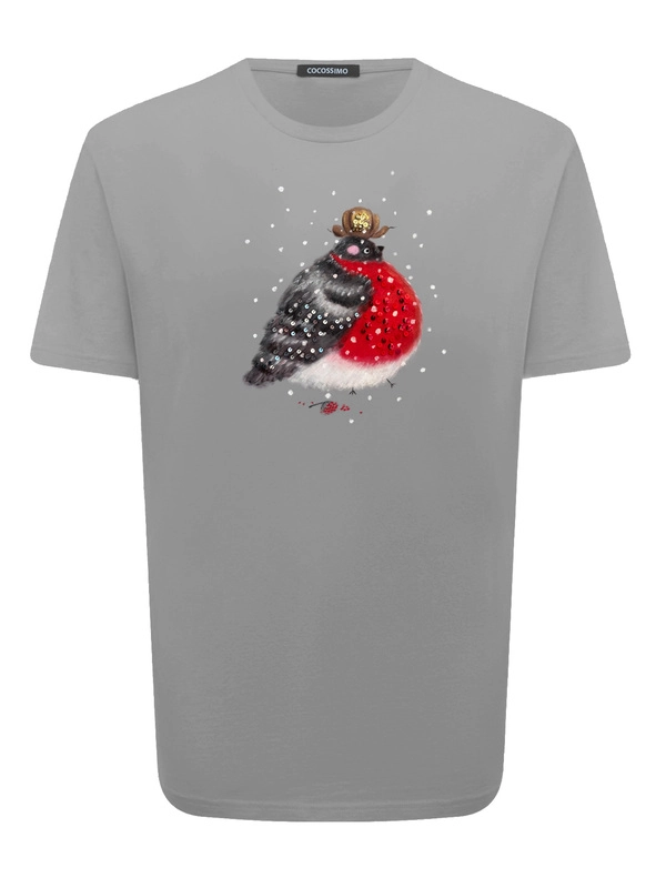 Футболка снегирьс принтом и вышивкой