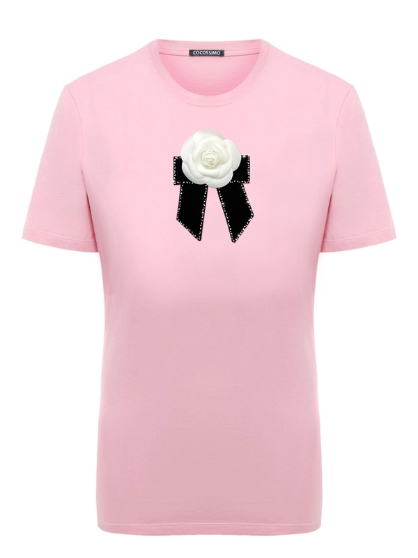 Футболка с камелией в стиле Chanelс брошью