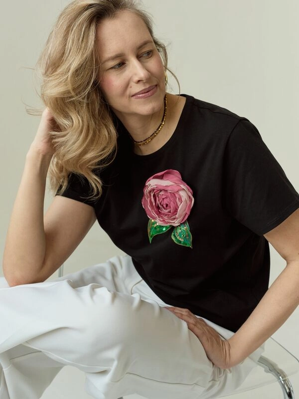 Футболка Пион прямого кроя с объемным цветком из итальянского шифона.