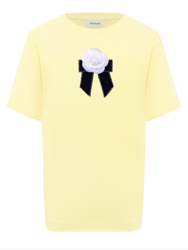 Футболка с камелией в стиле Chanel сливочнаяс брошью