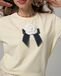 Футболка сливочная прямого кроя с открепляемой брошью из плотного атласа и вышивкой ручной работы из японского бисера.