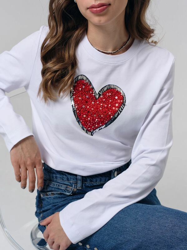 Лонгслив женский прямого кроя с росписью и вышивкой ручной работы. Премиальный плотный хлопок с бархатистым peach-эффектом.