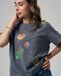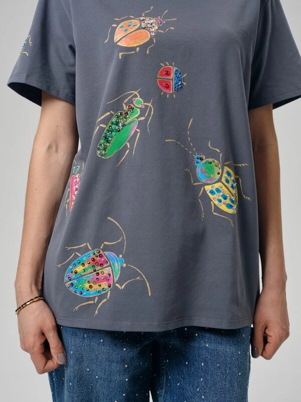 Футболка Жуки женская графитовая прямого кроя с яркими жуками.