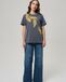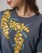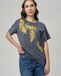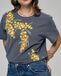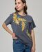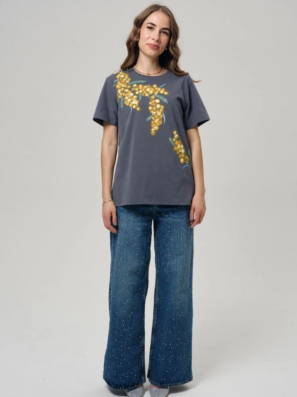Футболка с мимозой графитоваяc принтом и вышивкой